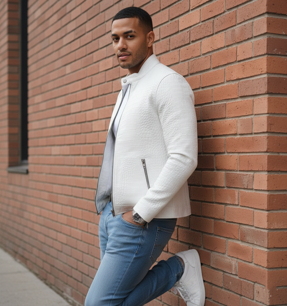 La veste Kevin est conçue pour l’homme qui aime être stylé et attirer l’attention. Les détails en simili-cuir captent le regard, tandis que la couleur blanche met en valeur la qualité de la confection. Parfaite pour ceux qui veulent se démarquer avec élégance et personnalité.